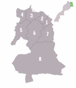 الإنتماء الجغرافي لجهة الشرق و الذي يضم عمالات وأقاليم كل من: